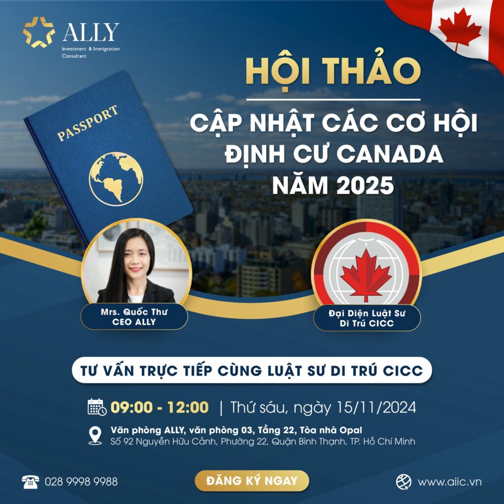 🇨🇦 HỘI THẢO: GIẢI PHÁP ĐỊNH CƯ CANADA AN TOÀN 🇨🇦 – Thời gian: 09:00 – 12:00 ngày 15/08/2025 – Địa điểm: Văn phòng ALLY,
