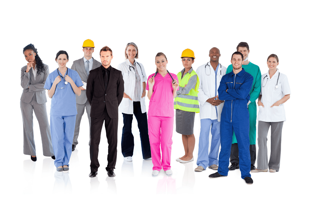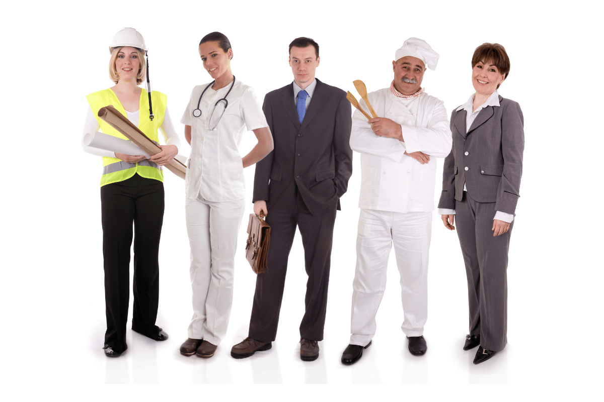 • Lĩnh vực sức khỏe: Bác sĩ đa khoa, chuyên khoa, gia đình; nhà trị liệu học; dược sĩ; y tá; chuyên viên phòng xét nghiệm y khoa; chuyên gia chăm sóc sức khỏe và hỗ trợ khuyết tật.