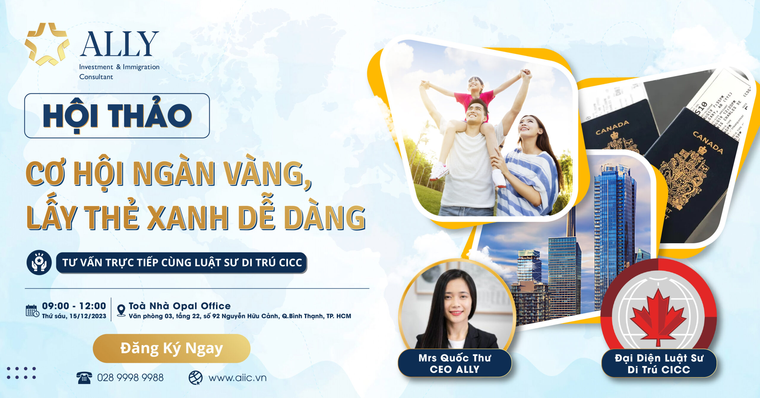 – Được giải đáp các thắc mắc trực tiếp từ Tổng giám đốc của ALLY & Luật sư di trú Canada CICC hơn 10 năm kinh nghiệm