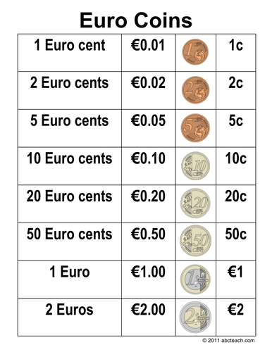– Tiền xu EURO là những đồng tiền được phát hành với mệnh giá Euro: 1,2 ; Euro Cent: 50, 20, 10, 5, 2, 1.