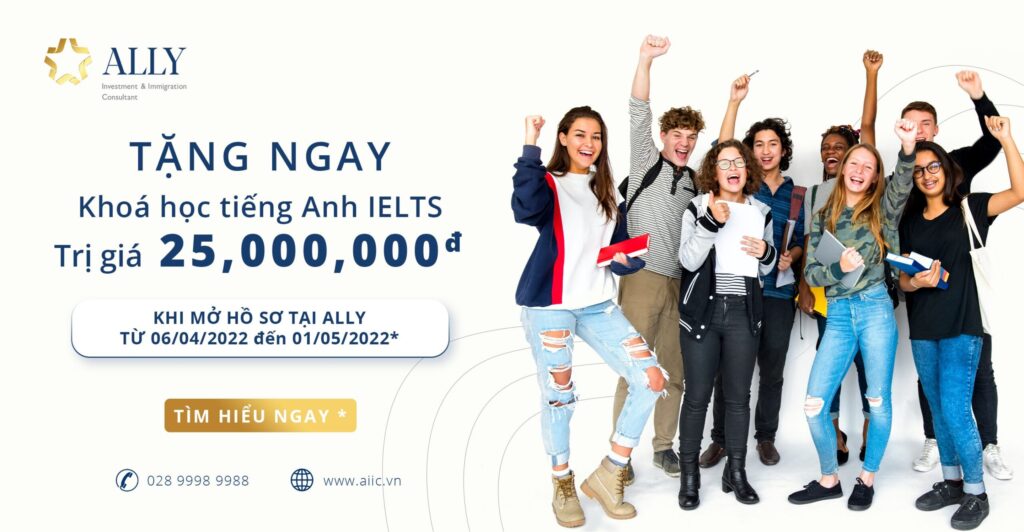 Điều kiện áp dụng: – Khách hàng sử dụng dịch vụ định cư diện tay nghề cao tại ALLY: tặng khoá học tiếng Anh (trị giá $1,000) + vé máy bay