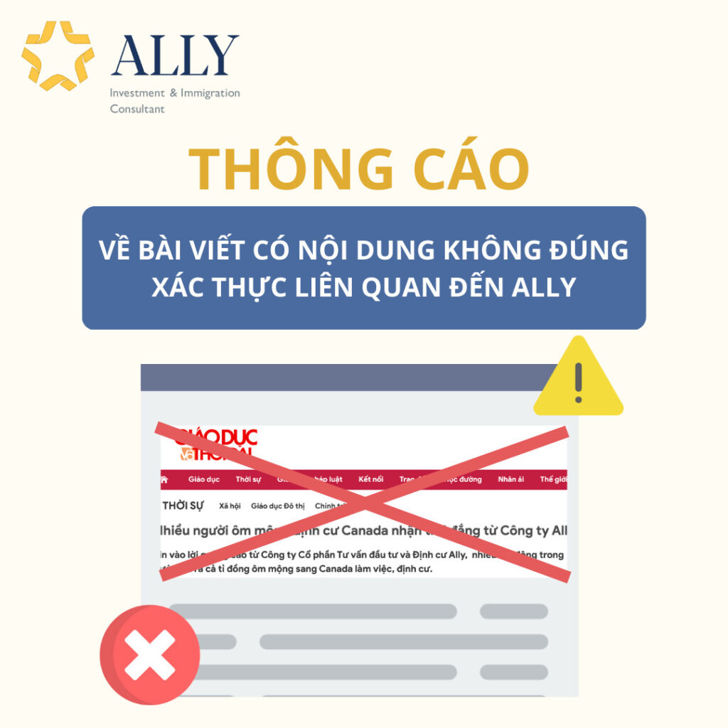 THÔNG CÁO: VỀ BÀI VIẾT CÓ NỘI DUNG KHÔNG ĐÚNG XÁC THỰC LIÊN QUAN ĐẾN ALLY