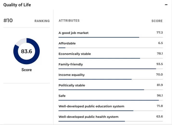 Bảng đánh giá chỉ số chất lượng cuộc sống tại New Zealand: