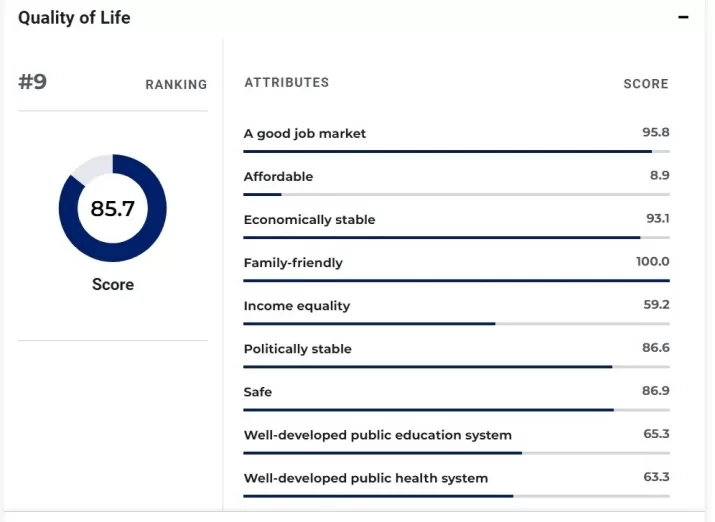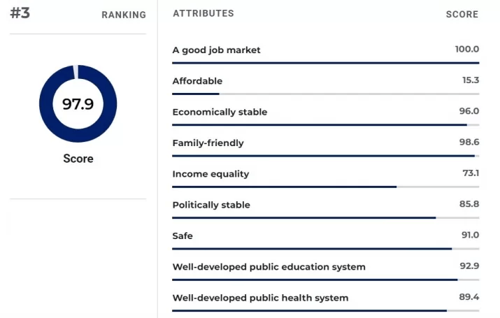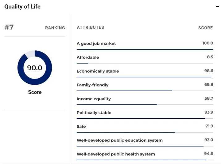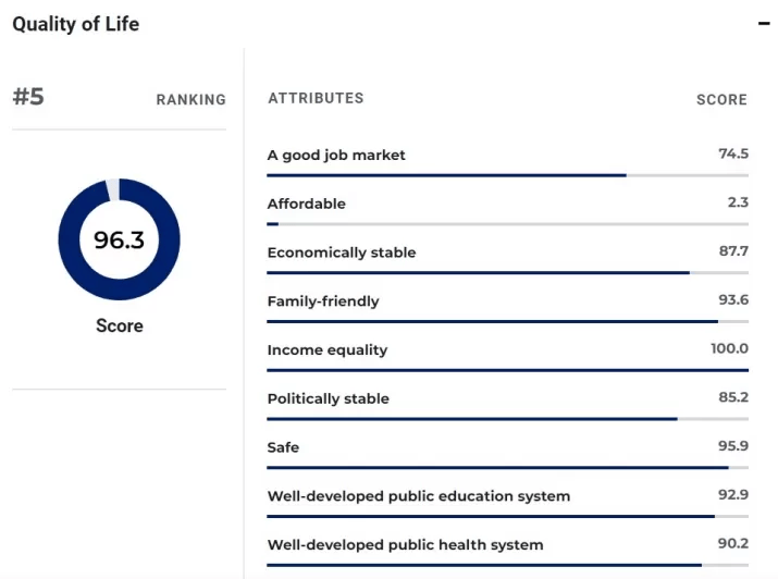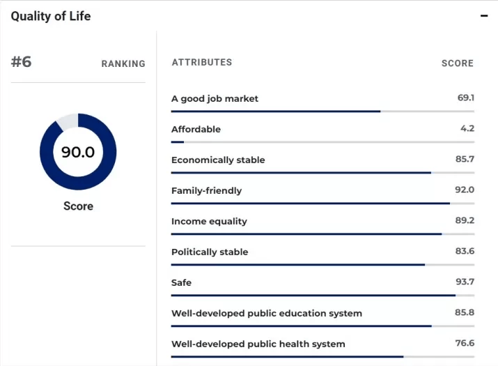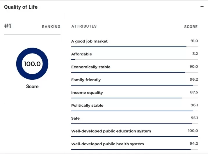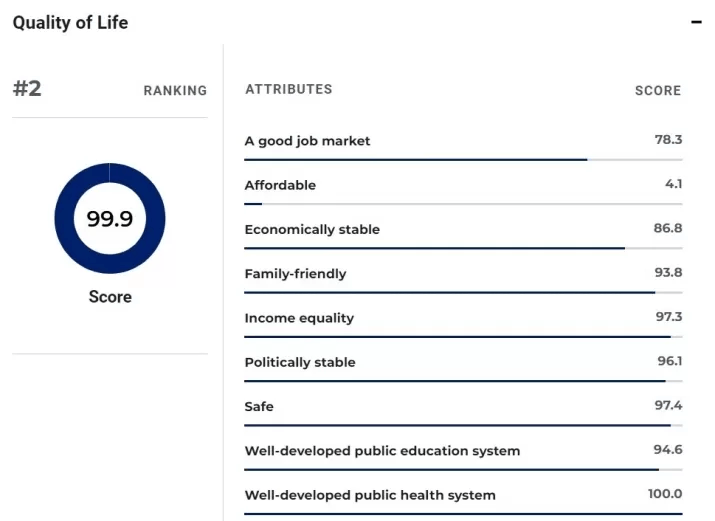Bảng đánh giá chỉ số chất lượng cuộc sống tại Na Uy: