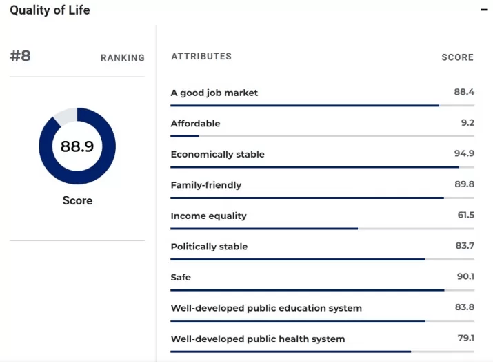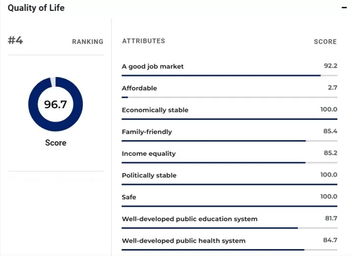 Bảng đánh giá chỉ số chất lượng cuộc sống tại Thụy Sĩ: